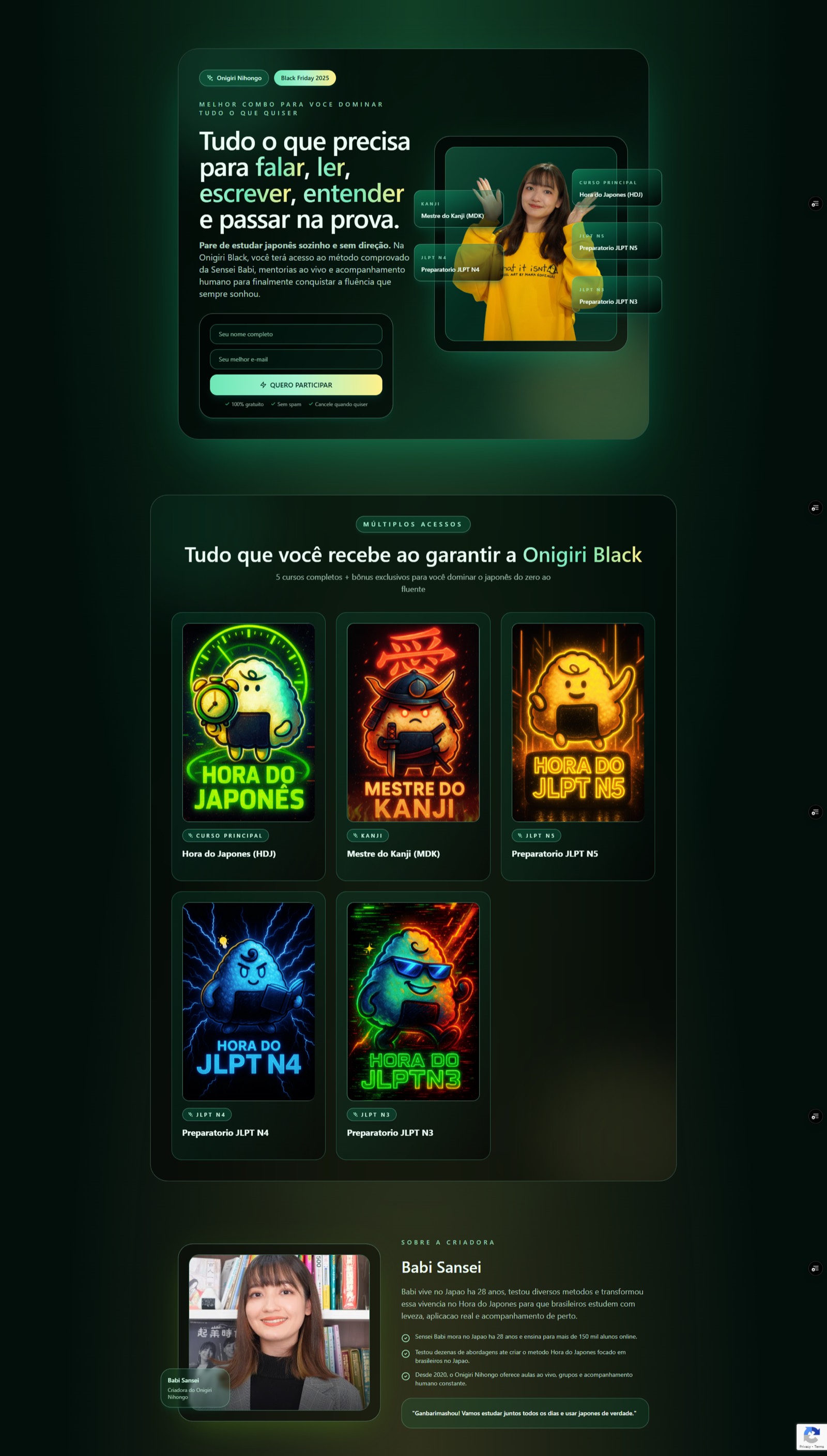 Website para curso de japonês com método comprovado de memorização de kanji.
